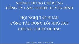 Ngày 09/01/2024 Nhóm chứng chỉ rừng các Công ty lâm nghiệp tập huấn nâng cao năng lực quản lý rừng theo tiêu chuẩn FSC tại Hội trường Công ty TNHH lâm nghiệp Yên Sơn